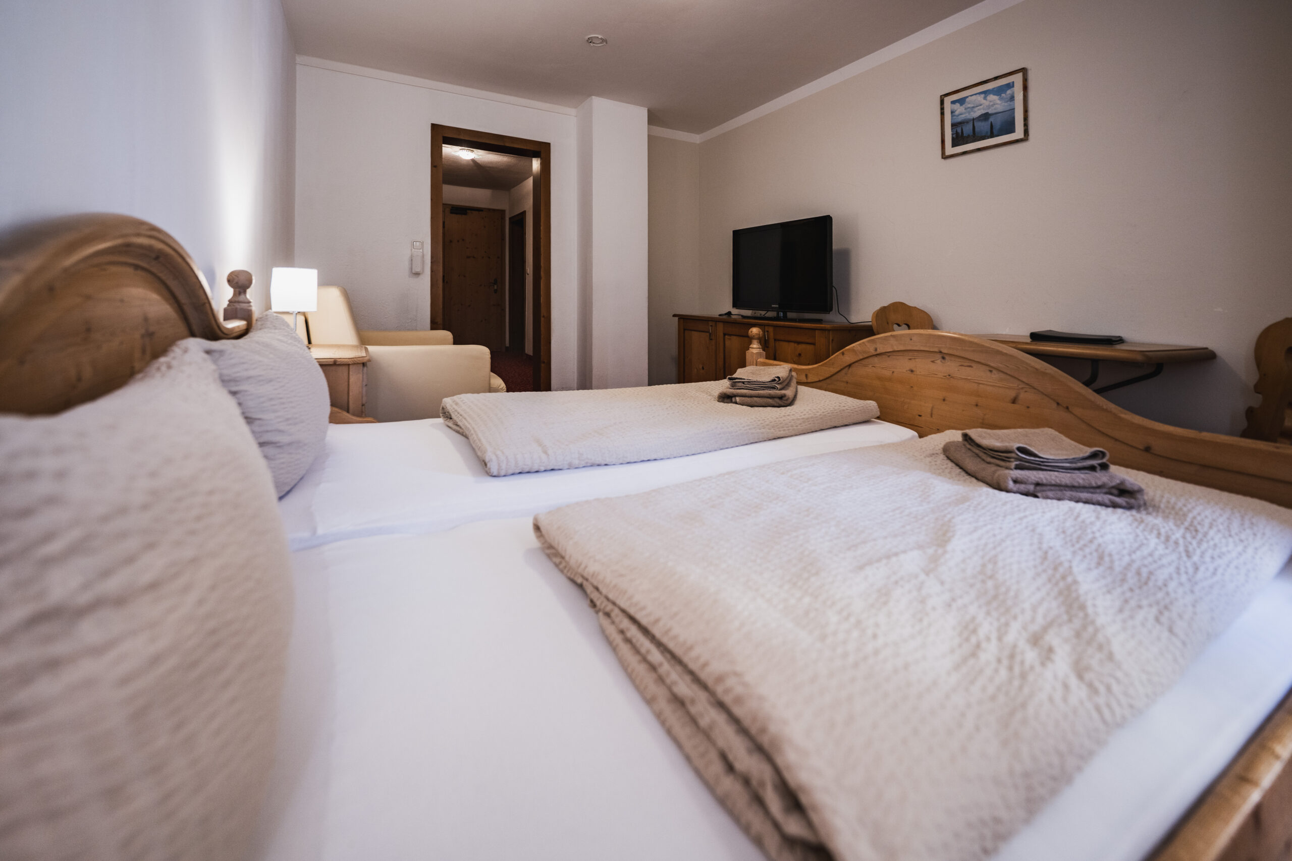 Unsere Zimmer sind ideal für alle, die es ruhig und gemütlich mögen. Helle Farben, natürliche Materialien und eine harmonische Einrichtung schaffen ein angenehmes Ambiente. Perfekt, um nach einem aktiven Tag in den Bergen zur Ruhe zu kommen.